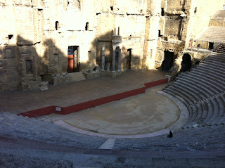 One of our excursions away from Uzès recently found us in the town (small city) of Orange, about 40 or so kilometres away. Since there is such an amazing amount of Roman history throughout this area, we decided to take in the 'Thèâtre Antique d'Orange', or as we would call it, the really cool Roman amphitheater in Orange.